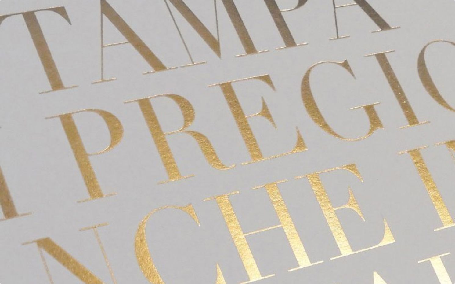 È la regina delle nobilitazioni. Utilizza una tecnica classica e artigianale per applicare una sfoglia metallica, colorata o olografica a carte e cartoncini. Un metodo intramontabile che impreziosisce senza eguali la confezione di uno stampato.